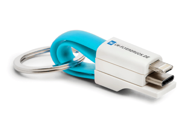 Der Anhänger verfügt über die Anschlüsse USB Typ-C, Micro-USB und Lightning. Das Kabel lässt sich durch Magnetverschluss einfach am Schlüsselbund befestigen.