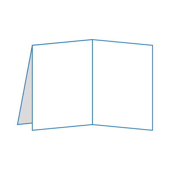 Beim Einbruchfalz, den sie in unserem Shop unter Parallelfalz finden, wird das Papier einmalig in der Mitte geknickt. Dadurch entstehen vier Seiten, die Sie frei gestalten können. Diese Falzart eignet sich beispielsweise für Tischkarten, Gruß- und Einladungskarten oder Klappvisitenkarten.