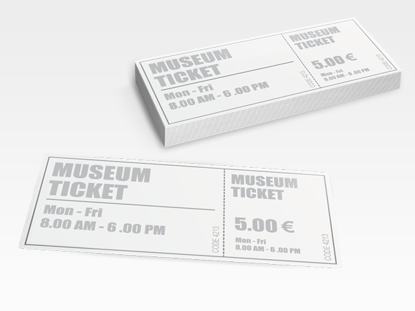 Neben den klassischen Standardpapieren von 170g bis 300g Bilderdruck drucken wir Eintrittskarten auch auf 250g und 300g Offsetpapier, 300g Recyclingpapier und 246g Leinenstruktur-Papier. Besonders veredelt sind die Eintrittskarten bei der Auswahl folgender Papiersorten: