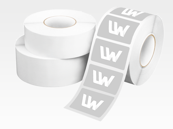 Etiketten im Wunschformat sind außenliegend auf Rolle mit einem Innendurchmesser von 3 Zoll (ca. 76 mm) angebracht. Die Laufrichtung kann für den Fall gewählt werden, dass die Etikette maschinell angebracht werden.