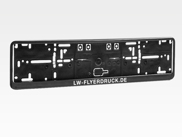 Individuelle Kennzeichenhalterung - Werbung auf vier Reifen Fahrzeuge sind rollende Werbeflächen - nutzen Sie sie! Das können Sie nicht nur mit Aufklebern, Klebefolien oder Magnetschildern, sondern auch mit einer bedruckten Kennzeichenhalterung. Neben der für die Montage notwendigen Grundplatte verfügt die Kennzeichenhalterung um eine Werbeleiste, die wir nach Ihren Wünschen bedrucken können. Vor allem für Firmenwägen eignet sich eine Kennzeichenhalterung bedruckt mit dem Firmenlogo. Für wen eignen sich Kennzeichenhalter? Sie haben eine Autowerkstatt oder ein Autohaus? Kennzeichnen Sie Ersatzwagen, die zu Verkauf stehenden Modelle oder die Fahrzeuge Ihrer Fahrschule. In diesen Bereichen ist eine bedruckte Kennzeichenhalterung ein Must-have und zeugt von Professionalität. Da die Kennzeichenhalterungen bereits ab 1 Stück bestellt werden können, eignen sie sich auch für den privaten Gebrauch. Verwenden Sie sie zum Beispiel für Fahranfänger oder bringen Sie sie bei einer Hochzeit an Ihrem Auto an.