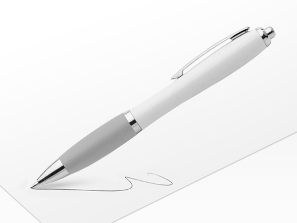 Unser Kunststoff Kugelschreiber hat ein weißes Gehäuse, welches bedruckt werden kann und edel verchromte Beschlagteile. Der Griff kann individuell in der Farbe Ihrer Wahl gewählt werden, hier stehen Ihnen die 6 verschiedenen Farbauswahlmöglichkeiten zur Verfügung.