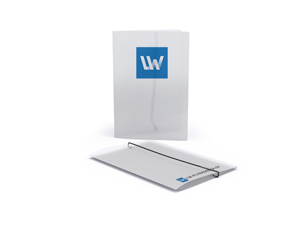Unsere Kunsstoffmappen mit Gummiband sind nicht nur edel und widerstandsfähig sondern auch extrem praktisch. Dank lasierender Offsetfarben wirkt der Druck auf dem halbtransparenten 460 g/m² Polyprpylen Kunsstoff durchscheinend. Alternativ können Sie auch zum 300 g/m² Bilderdruckpapier greifen, dieses ist auch mit PEFC™ - Zerifizierung erhältlich.