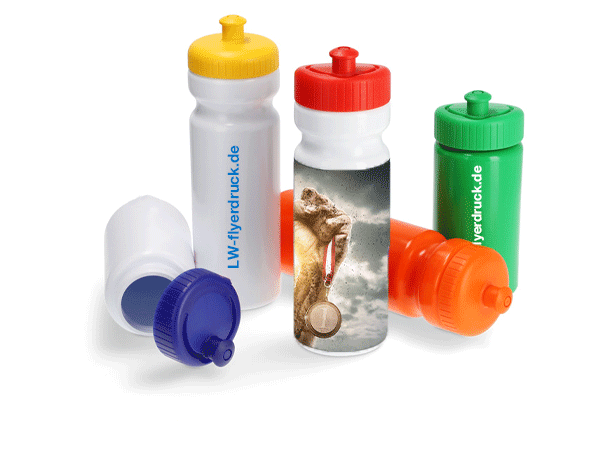 Setzen Sie Ihr Unternehmen perfekt in Szene: Bei LW-flyerdruck können sie hochwertige Flaschen individuell bedrucken. Ideal für Werbeaktionen, Events oder als Kundengeschenk. Ob Glas-, Kunststoff- oder Edelstahlflaschen - wählen Sie aus verschiedenen Varianten, Größen und Farben. Unsere modernen Druckverfahren garantieren brillante Farben und hohe Haltbarkeit - selbst bei häufigem Gebrauch oder Reinigung. Besonders beliebt sind bedruckte Flaschen bei Fitnessstudios, Firmen und Vereinen.