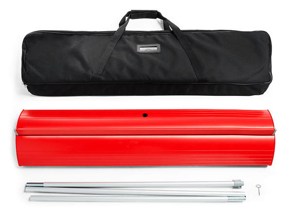 Auffällig, individueller: Roll-Up Classic - Nachdruck Mit dem Roll-Up Color Banner gestalten Sie Ihre Werbefläche ganz nach Ihren Vorstellungen und passen auf Wunsch sogar das Gehäuse farblich an Ihr Design an. Auch bei den Materialien stehen Ihnen zahlreiche Optionen zur Auswahl: vom Polyester- und Baumwollgewebe über PP-Folie bis hin zur klassischen PVC-Plane. Das Polyester-Gewebe ist zudem als umweltfreundliche Recycling-Variante erhältlich. Mit einem Format von 85 x 200 cm entspricht das Banner einem gängigen Standardmaß und eignet sich optimal für vielseitige Einsätze. Der Austausch des Banners ist dank praktischer Klemmleiste besonders einfach, sodass Sie Ihr Motiv jederzeit flexibel anpassen können. Unser Roll-Up Classic: Materialien: Verschiedene hochwertige Bannermaterialien und Verarbeitung Farbigkeit: 4/0-Farbdruck Formate: 85 x 200 cm Verwendung: Innenbereich Auflagen: ab 1 Stück bis 15 Stück Pro Bestellung ist nur ein Motiv möglich Tipps zur Gestaltung Ihres Roll-up Banners Gerade auf stark frequentierten Veranstaltungen wie Messen ist es entscheidend, sich visuell von der Konkurrenz abzuheben. Mit dem Roll-Up Color Banner schaffen Sie dafür bereits eine ideale Grundlage – das Design sollte dennoch gezielt durchdacht sein. Setzen Sie auf klare und prägnante Botschaften: Zu lange Texte wirken abschreckend und werden oft nicht gelesen. Ergänzende Informationen lassen sich besser im persönlichen Gespräch oder über zusätzliche Materialien vermitteln. Platzieren Sie Ihr Logo sowie Kontaktdaten im oberen oder unteren Bereich des Banners. Die zentrale Werbebotschaft sollte sich auf Augenhöhe befinden, damit sie sofort ins Blickfeld fällt. Bei der Farbgestaltung haben Sie freie Wahl. Kräftige, kontrastreiche Farben sorgen insbesondere auf großen Events für hohe Sichtbarkeit – achten Sie jedoch darauf, dass diese mit Ihrem Corporate Design und Ihrer Markenbotschaft harmonieren. Ergänzungen zum Roll-Up Classic In Kombination mit unseren Messetresen sind Sie bereits perfekt für den Messebesuch gerüstet. Stellen Sie noch einen Prospektständer dazu, um Flyer und Infobroschüren für vorbeikommende Besucher bereitzustellen.