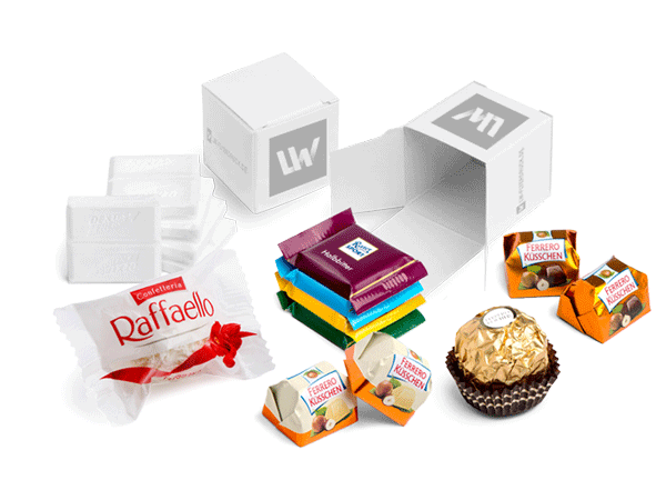 Egal ob Kleinkind, Teenager oder Erwachsener - jeder liebt Süßigkeiten! Mit der bedruckten Süßen Werbung zaubern Sie jedem Kunden, Geschäftspartner oder Gast ein Lächeln ins Gesicht. Bedruckte Süßwaren für den Konferenzraum oder als Kundengeschenk an der Theke, mit unserer großen Auswahl an verschiedenen Leckereien ist für jedes Schleckermaul etwas dabei.