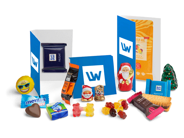Egal ob Kleinkind, Teenager oder Erwachsener - jeder liebt Süßigkeiten! Mit der bedruckten Süßen Werbung zaubern Sie jedem Kunden, Geschäftspartner oder Gast ein Lächeln ins Gesicht. Bedruckte Süßwaren für den Konferenzraum oder als Kundengeschenk an der Theke, mit unserer großen Auswahl an verschiedenen Leckereien ist für jedes Schleckermaul etwas dabei.